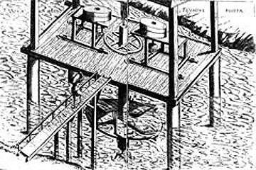 A fenti ábrán olyan vízimalom látható, amelynek vízbe merülõ hajókereke